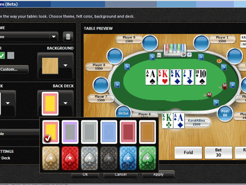 Покер софт Poker Stars отличается огромным числом положительных характеристик, а также привлекательным интерфейсом, что весьма не маловажно, особенно в ходе долгих турниров Техасского Холдема и напряженных кэш-игр, когда ваш взор часами устремлен на экран монитора. Основные опции включают в себя набор настольных тем, аватар, сведения об игроках, истории рук, меню окна, график проведения столов, широкий выбор турнирных игр и структур кэш-игр, изменяемые размеры столов и многое другое. Несмотря на подобное многообразие характеристик, все опции и меню удобны в использовании и не вызывают каких-либо затруднений, поэтому вам вряд ли придется долго привыкать к софту.