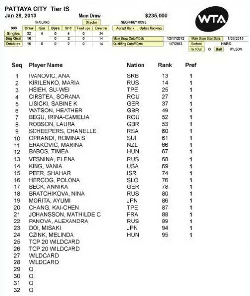 Патайя – второй по размерам турнир. Призовые – 235 000 долларов. Список участниц - на рисунке.